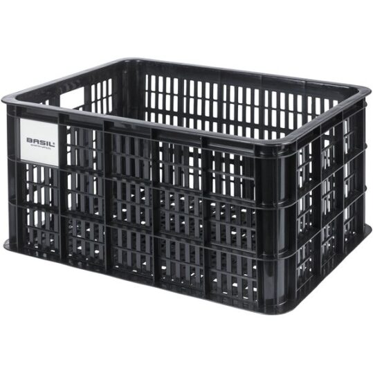 The Basil bicycle size L crate is a black bicycle crate for women`s or men’s bicycles. The crate is made of sustainable material, has a capacity of 40 litres, and is suitable for the MIK system.