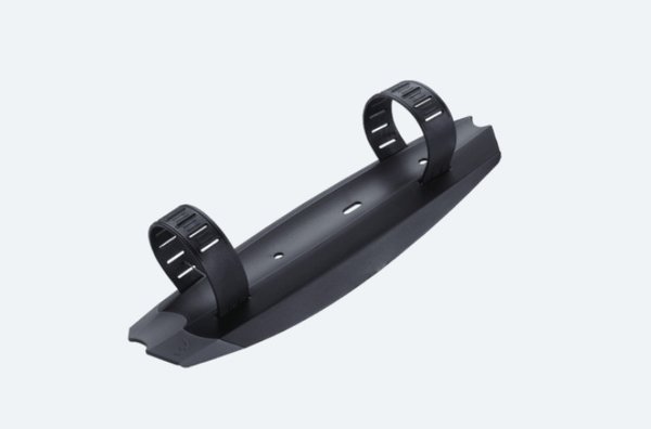 This mountainbike fender catches the mud before it completely covers your bike. The easy to attach elastomer straps make it easy to take off or put it on whenever you want. The mudcatcher II is attached to the downtube of your frame and will fit almost every bike to keep you clean on every ride.